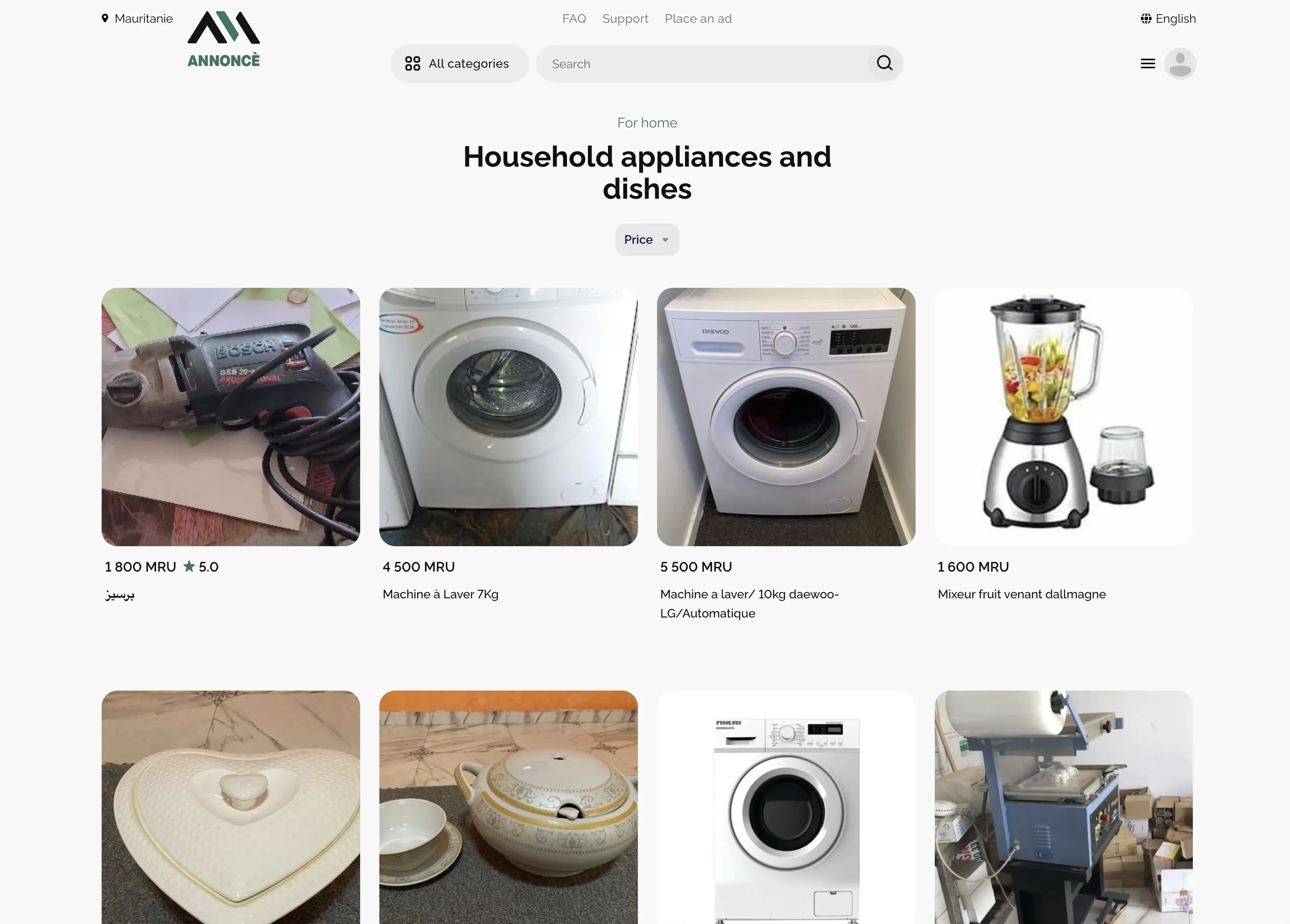 Доска объявлений для Мавритании, где продают всё: от недвижимости до электроники. Удобный поиск и простое размещение объявления.