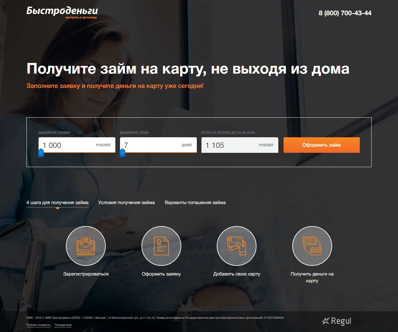 Сайт для быстрого оформления займов онлайн. Клиенту — пару кликов и деньги на карте. Бизнесу — автоматизированное одобрение и минимум бумаги.