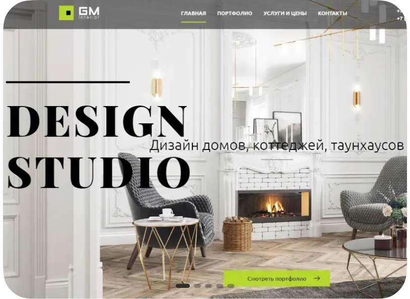 Сайт с примерами работ и услугами для дизайн-агентства интерьеров. Удобное портфолио и понятная навигация для будущих клиентов.